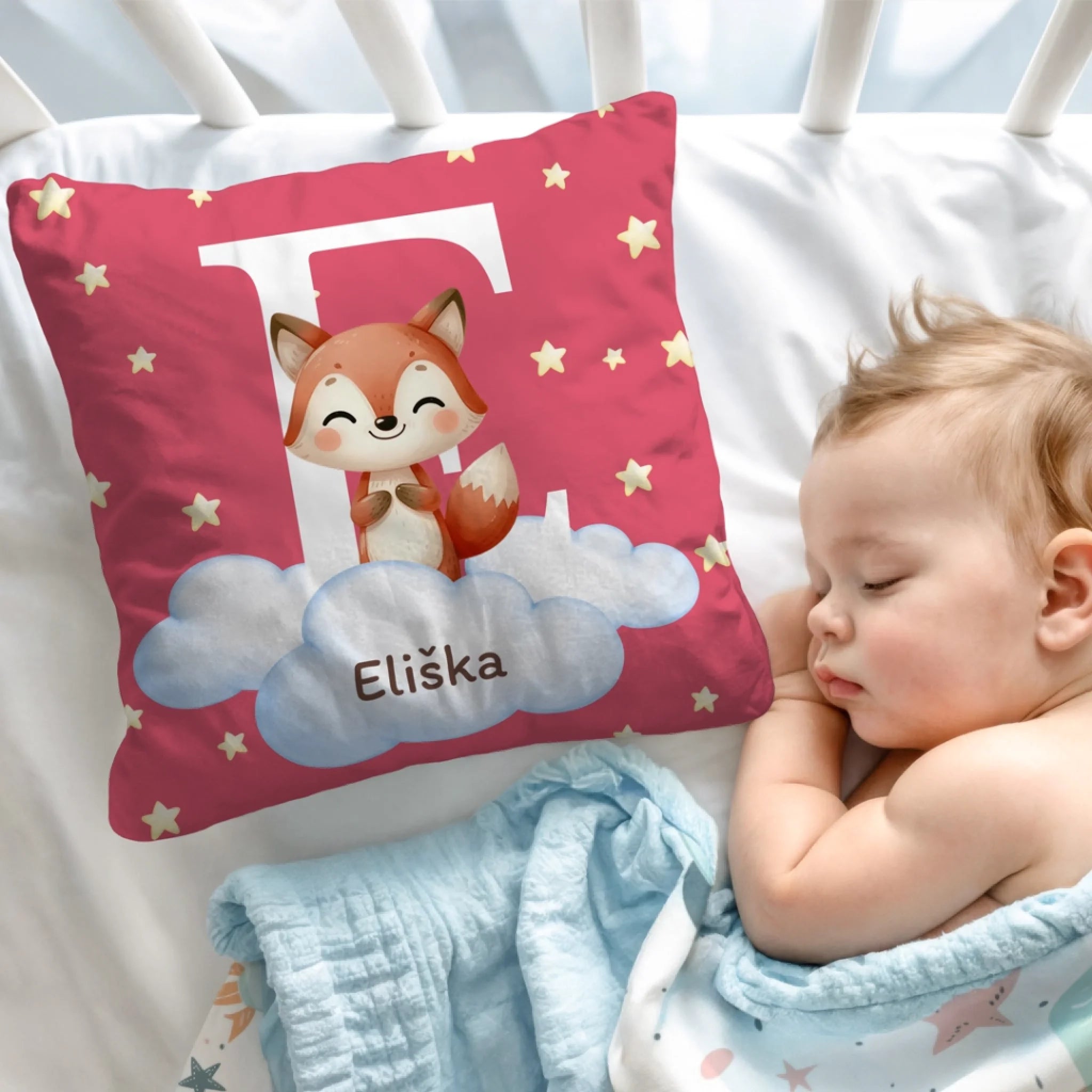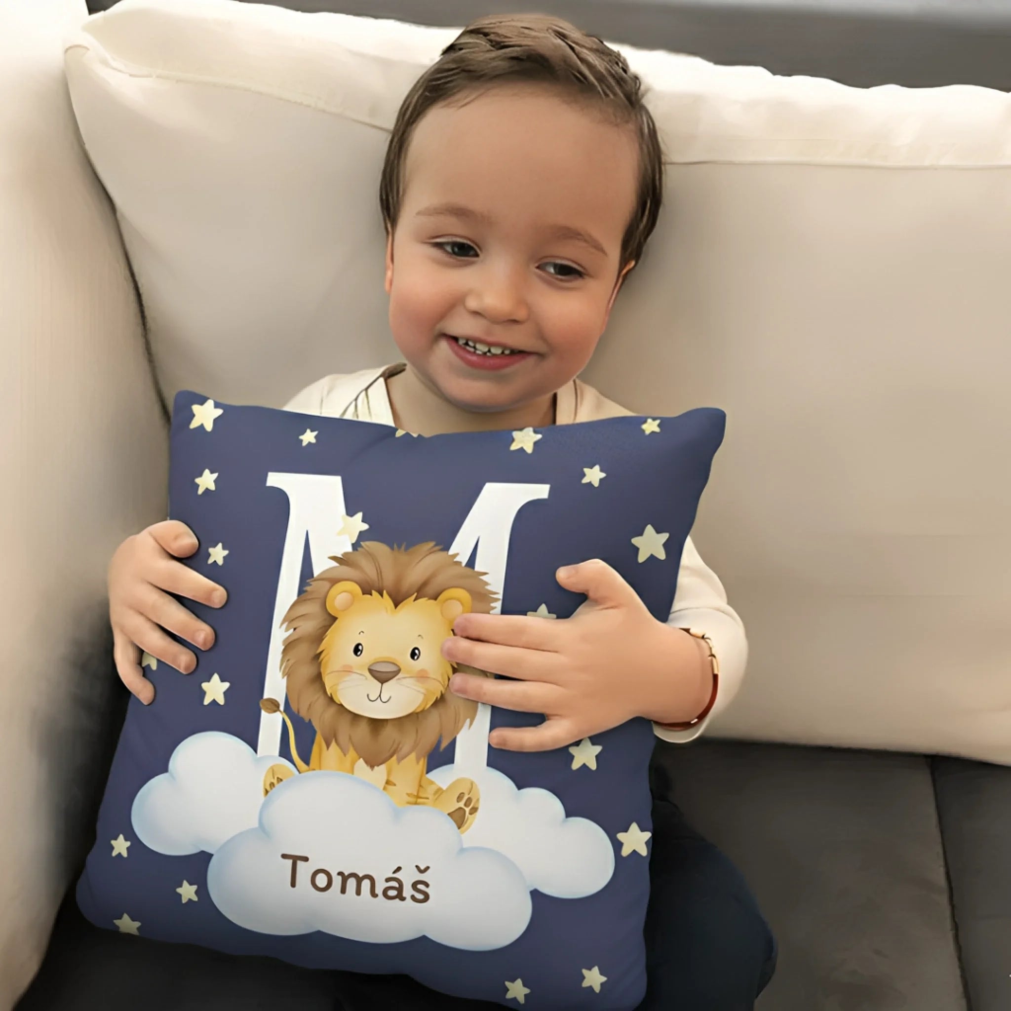 Tento polštář zobrazuje roztomilá lesní zvířátka v pohádkovém prostředí plném hvězd a obláčků. Jeho živé barvy a detailní ilustrace vnesou do každé místnosti radostnou atmosféru. Polštář lze plně personalizovat – přidáním iniciály a jména – a je tak dokonalou volbou jako kouzelný a útulný doplněk do dětského pokoje nebo herního koutku.